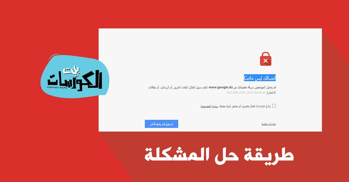 حل مشكلة اتصالك ليس خاصا : يحدث في كثير من الأحيان عند تصفح احدي مواقع شبكة الانترنت أن تظهر لنا العديد من رسائل الخطأ والتي يكون المتسبب بها أما الموقع نفسه أو مشكلة من أجهزتنا ،واليوم سوف نتطرق إلي حل مشكلة اتصالك ليس خاصا والتي تظهر للعديد من المستخدمين وتثير…