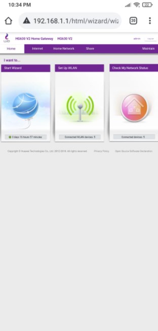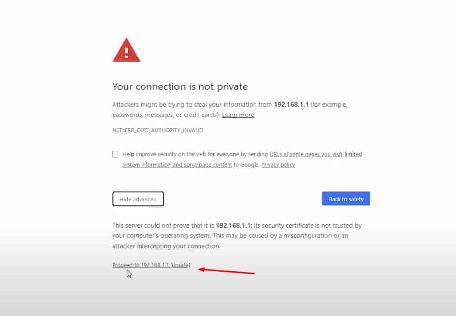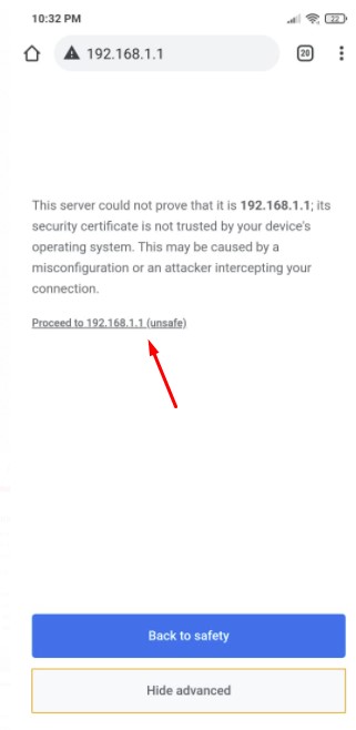 كل ما عليك القيام به هو الدخول إلي المتصفح الموجود على هاتفك بعد ذلك قم بكتابة 192.168.1.1 في نافذة المتصفح ومن جديد ستظهر لك تلك الواجهة وهنا ستقوم بالضغط على خيار Advanced كما هو بتلك الصورة بالضبط .