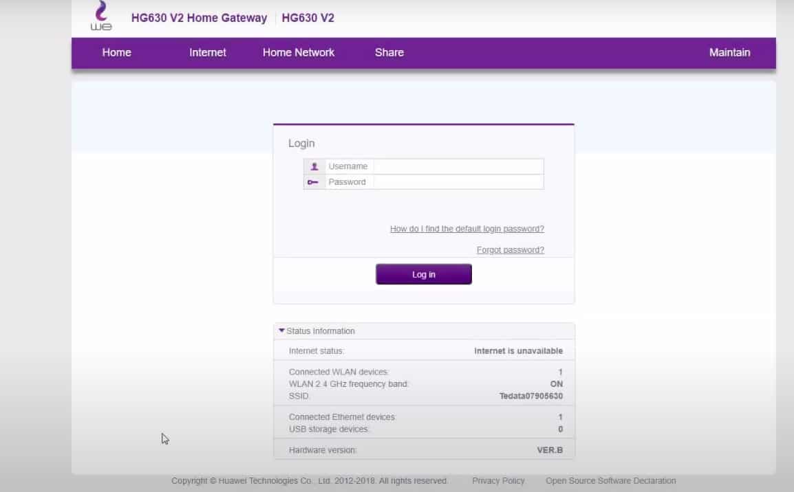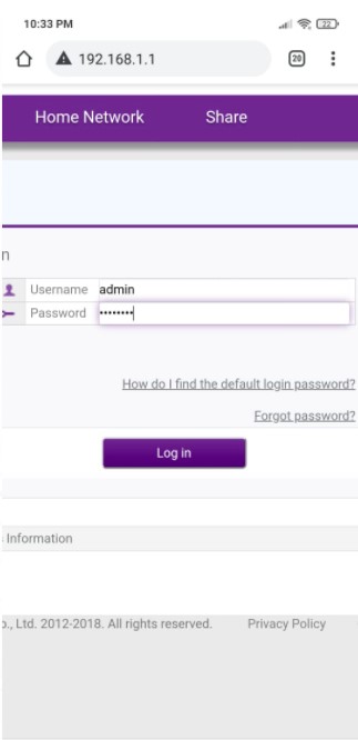 وستظهر لك الصفحة كما هو بتلك الصورة وهنا ستقوم بإدخال اسم المستخدم وكلمة المرور واسم المستخدم سيكون admin في حالة عدم تغييره وكلمة السر ستجدها مكتوبة على ظهر الراوتر ولن تكون admin كما هو الحال في الأجهزة السابقة .