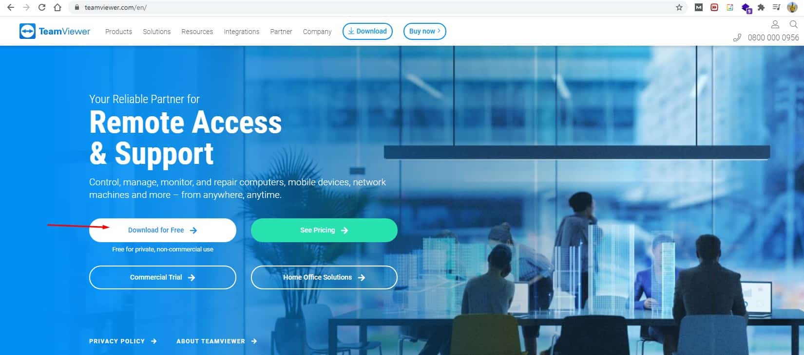هناك الكثير من البرامج الرائعة التي يمكنك استخدامها كما أوضحت سابقاً ولكن عن تجربة شخصية لن تجد أفضل من برنامج TeamViewer للقيام بهذا الأمر فعملية استخدامه مجانية وبسيطة للغاية فقط كل ما عليك القيام به هو البدء في عملية تحميل هذا البرنامج وتستطيع القيام بهذا الأمر من خلال الضغط هنا وسوف يتم تحويلك فوراً إلي داخل الموقع الرسمي وستظهر لك واجهة الموقع كما هو بتلك الصورة بالضبط ويمكنك البدء في عملية التنزيل من خلال الضغط على خيار Free Download كما هو بتلك الصورة بالضبط .