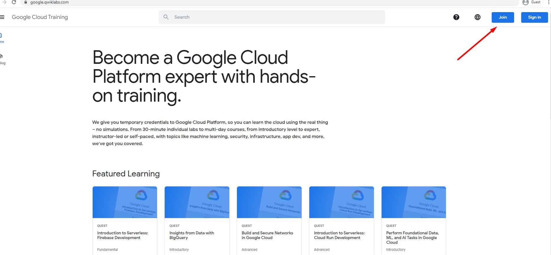 - سوف تنبثق لك نافذة جديدة ومنها سوف نقوم بالذهاب إلي موقع Google Cloud Training عن طريق الضغط هنا .