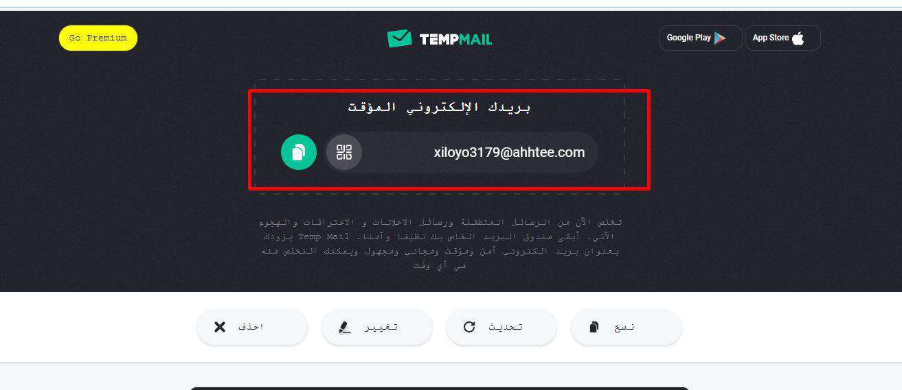 - بمجرد الدخول على الموقع سوف يتم إنشاء بريد إلكتروني عشوائي قم بنسخه .