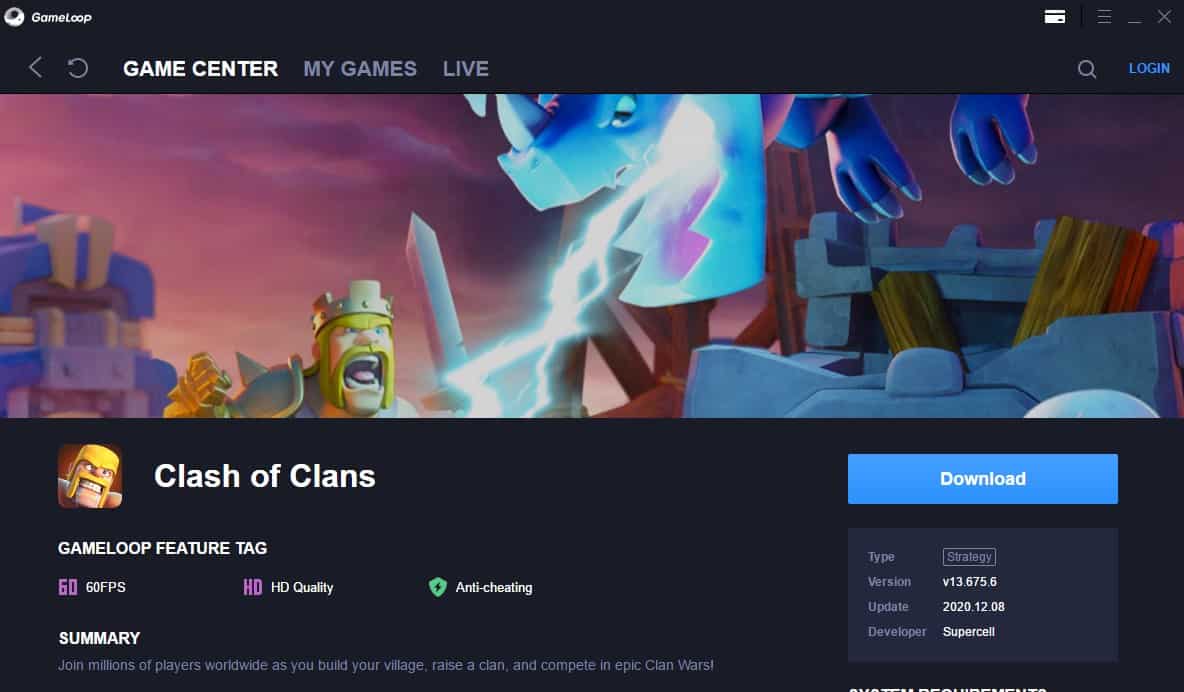 إن عملية تشغيل لعبة كلاش اوف كلانس على الكمبيوتر كما أوضحت سابقاً لن تتم بدون وسيط فأنت في حاجة إلي برنامج لتشغيل الاندرويد على الكمبيوتر وتحديداً ألعاب الاندرويد وفي تلك الحالة عزيزي القارئ لن تجد أفضل من محاكي GameLoop للقيام بتلك المهمة فهناك الكثير من المستخدمين يعتقدوا أن محاكي GameLoop تم تخصيصه فقط من أجل تشغيل لعبة Pubg على الكمبيوتر وهذا غير صحيح بكل تأكيد فمن خلال هذا المحاكي يمكنك تشغيل أي لعبة اندرويد على الكمبيوتر ولكن يشترط أن تكون اللعبة في قائمة الدعم الخاصة بك وللحظ الجيد يمكنك تشغيل لعبة كلاش اوف كلانس من خلال هذا المحاكي بسهولة شديدة وهذا بالضبط ما سوف نتعرف على طريقة القيام به من خلال الفقرات القادمة .