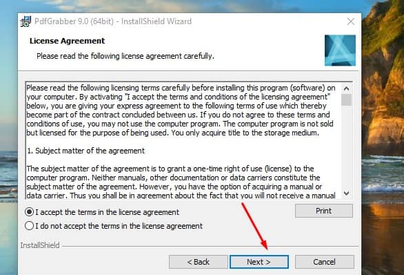 - وفي الخطوة الرابعة سوف يطلب منك الموافقة على شروط استخدام البرنامج، وبعد ذلك قم بالضغط على next مرة أخرى كما بالصورة التالية بالضبط.