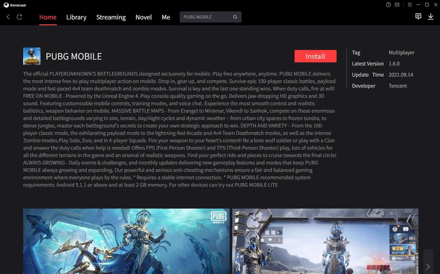 بعد الانتهاء من عملية تحميل وتثبيت المحاكي على جهاز الكمبيوتر الخاص بك يمكنك البدء في عملية تنزيل لعبة ببجي من خلال المحاكي كما أوضحت من خلال المقالات السابقة فقط عزيزي القارئ قم بفتح المحاكي ثم قم بالبحث عن لعبة ببجي بعد ذلك قم بالضغط على خيار Install من أجل البدء في عملية التثبيت على الفور كما هو بتلك الصورة بالضبط .