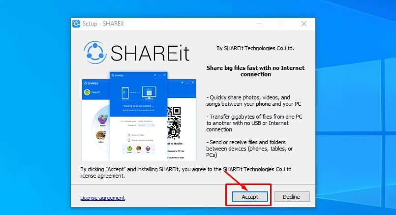 - في نافذة التثبيت الأولي قم بالضغط على Accept .