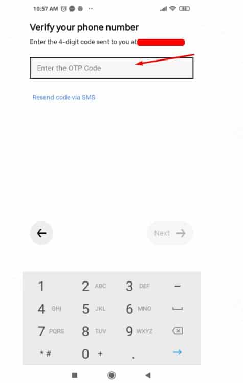 • بعد كتابة رقم هاتفك قم بالضغط على Next .