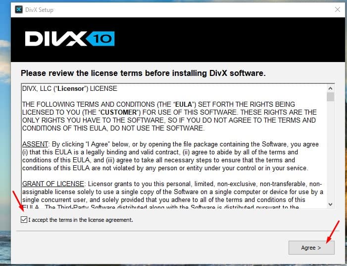 • وفي الخطوة الثالثة قم بالموافقة على شروط استخدام البرنامج، وبعد ذلك قم بالضغط على AGREE كما بالصورة التالية بالضبط.