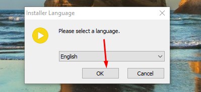 • وبعد ذلك سوف تجد أن البرنامج يجعلك تختار اللغة التي تريد أن يعمل بها كما بالصورة التالية؛ وذلك لأنه يدعم مجموعة كبيرة من اللغات، وبعد أن تختار اللغة قم بالضغط على ok.