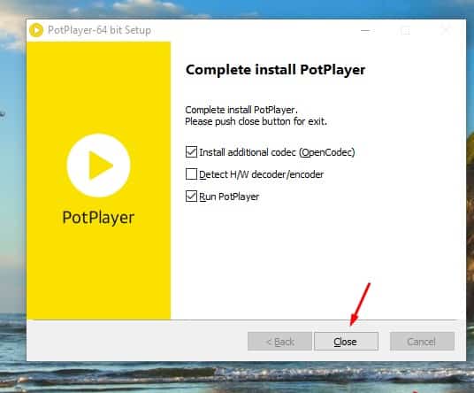 • وبعد أن تنتهي من عملية تحميل برنامج تشغيل الفيديو للكمبيوتر وتثبيته قم بالضغط في النهاية على close كما بالصورة التالية بالضبط.