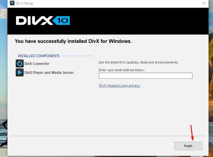 • وفي الخطوة الأخيرة بعد أن تنتهي من عملية تحميل برنامج تشغيل الفيديو للكمبيوتر قم بالضغط على finish كما بالصورة التالية بالضبط.