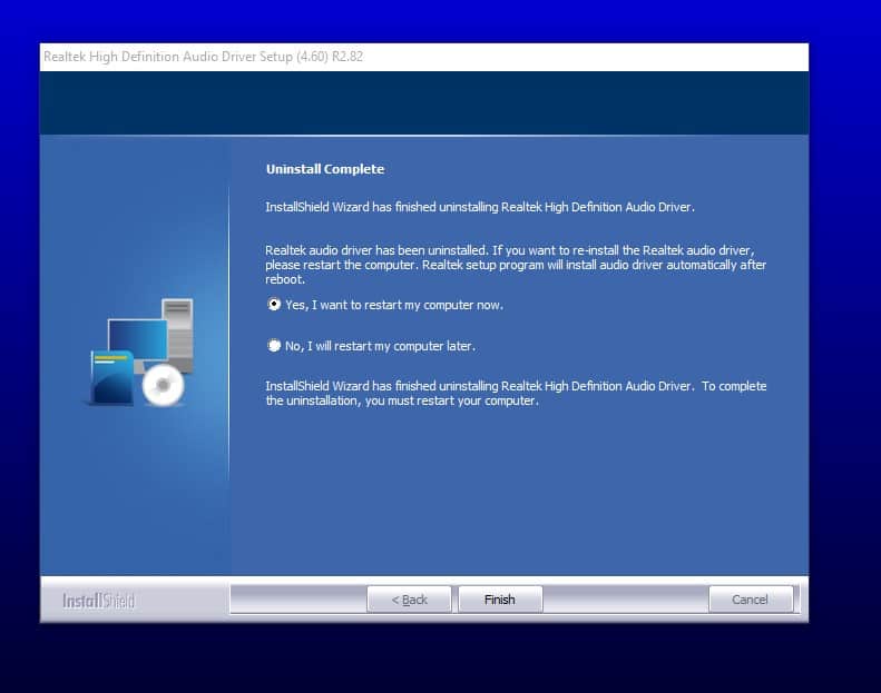 ستحتاج عزيزي القارئ أن تقوم بإعادة تشغيل جهاز الكمبيوتر الخاص بك حتى يتم الانتهاء من باقي خطوات التثبيت وتفعيل بطاقة الصوت وهذا أمراً طبيعي عندما تقوم بتثبيت تعريف جديد فالحاسوب في حاجة إلي عمل إعادة تشغيل من أجل إنهاء التثبيت بشكل صحيح والبدء في الاستفادة من التحديث الخاص بك .