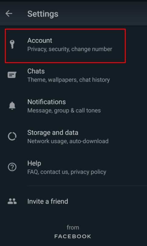 في الحقيقة أصدقائي إن الخطوات التي ستقوم بها على هاتفك الايفون هي نفس الخطوات التي ستقوم بها على هاتفك الاندرويد حتى تتمكن من القيام بهذا الأمر فقط عزيزي القارئ قم بفتح تطبيق واتس اب على هاتفك بعد ذلك قم بالضغط على النقاط الثلاثة من أجل الدخول إلي الإعدادات وهذا من خلال الضغط على خيار إعدادات أو Settings بعد ذلك قم بالضغط على خيار حساب أو Account كما هو بتلك الصورة بالضبط .