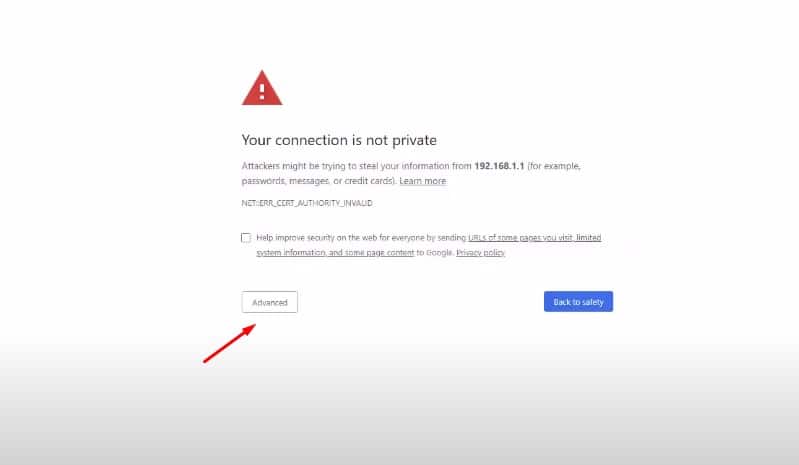 أعلم جيداً أن تلك الفقرة لا علاقة لها بما نتحدث عنه ولكن بما أن البعض يواجه مشكلة في القيام بهذا الأمر فلقد قررت شرحة أيضاً من خلال تلك التدوينة فقط عزيزي القارئ قم بتنفيذ الخطوات التالية، قم بفتح المتصفح بعد ذلك قم بكتابة 192.168.1.1 في نافذة المتصفح وستظهر لك تلك الواجهة وهنا ستقوم بالضغط على خيار إعدادات متقدمة أو Advanced كما هو بتلك الصورة بالضبط .