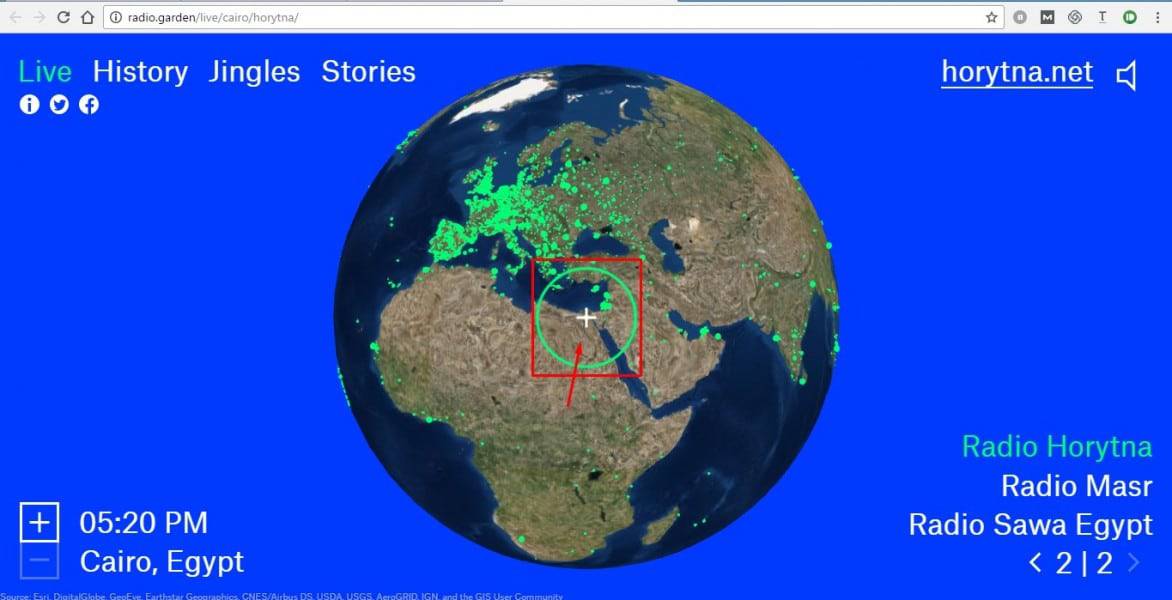 إن موقع Radio Garden هو موقع رائع تستطيع من خلالة أن تستمع إلي جميع محطات الراديو الموجودة في مختلف أنحاء العالم وتم تصميم واجهة الموقع بالاتفاق مع Google Earth وسيمكنك هذا الموقع الرائع من التعرف على لغات جديدة رائعة والاستماع إلي أغاني مختلفة بالعديد من اللغات مثل الفرنسية والانجليزية والصينية وكل اللغات الموجودة في العالم فقط قم بسحب الدائرة وقف على أي دولة في العالم على الكرة الأرضية وستظهر أمامك جميع محطات الراديو الموجودة بها وتستطيع أن تستمع لها في أي وقت .