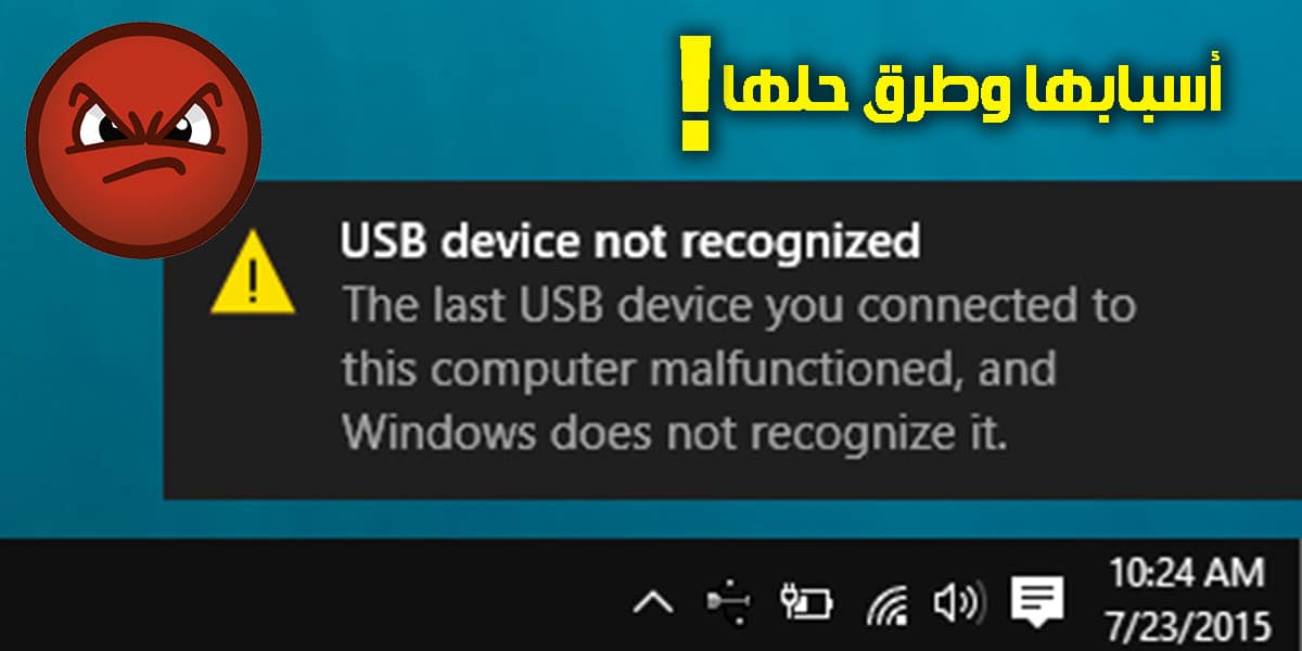 إذا قمت باستخدام الفلاش ميموري من قبل أو أي جهاز يعتمد على التوصيل من خلال منفذ ال USB فأنت بالتأكيد قد واجهت مشكلة ظهور رسالة USB Device Not Recognized وترجمتها هي أن هذا الجهاز الذي تقوم بتوصيله من خلال مدخل USB غير معروف أو لم يستطيع جهاز الكمبيوتر الخاص بك التعرف عليه وتعتبر تلك المشكلة من أصعب المشاكل التي قد تواجه مستخدمي أجهزة الكمبيوتر لان هناك العديد من الاحتمالات التي يمكن أن تُفرض للحل وفي هذا المقال اليوم سنطرح معكم افضل الطرق والأساليب التي عليك القيام بها حتى تستطيع من خلالها التخلص من مشكلة USB Device Not Recognized نهائياً والتمكن من استخدام الجهاز الذي قمت بتوصيله فقط تابعوا الفقرات التالية .